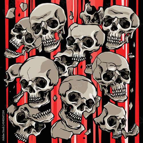 Falling human skulls skeletons comic art tattoo vintage style background texture graphics colorful