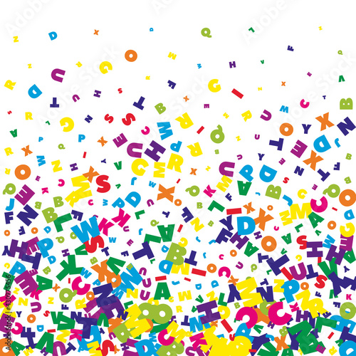 Falling letters of English language. Bright flying words of Latin alphabet. Foreign languages study concept. Mesmeric back to school banner on white background.