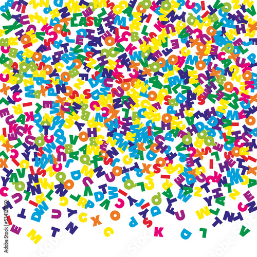 Falling letters of English language. Colorful flying words of Latin alphabet. Foreign languages study concept. Graceful back to school banner on white background.