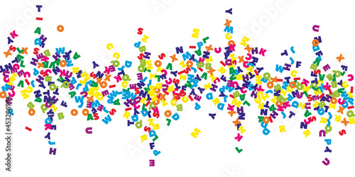 Falling letters of English language. Colorful flying words of Latin alphabet. Foreign languages study concept. Great back to school banner on white background.