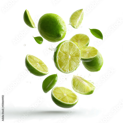 Falling lime isolated on a transparent background