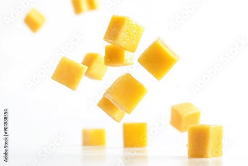 Falling Mango cube isolated on white background, full depth of field, ai