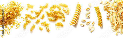 Falling pasta on a white or transparent background,