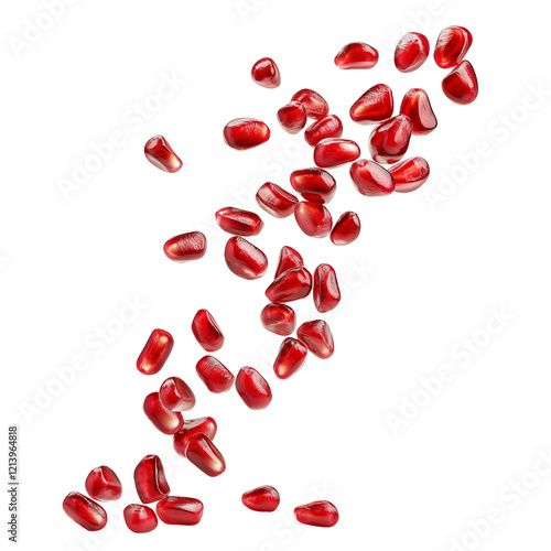falling pomegranate seeds isolated on transparent white background, clipping path