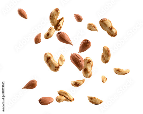 Falling Roasted Almonds and Peanuts on Transparent Background, PNG