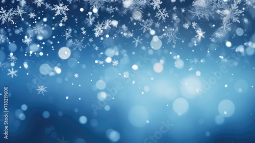Falling snowflakes and Bokeh with white snow on a blue background