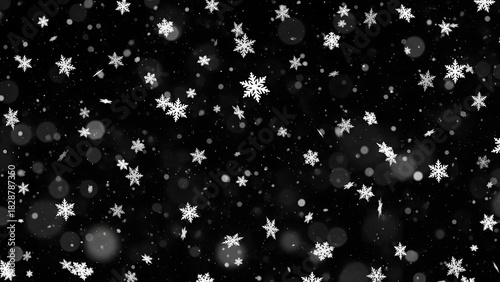 Falling snowflakes creating a magical winter scene in a dark night