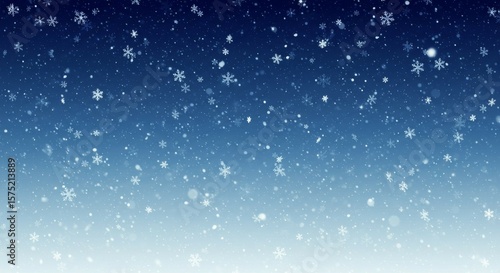 Falling Snowflakes on Blue Winter Sky Abstract Background