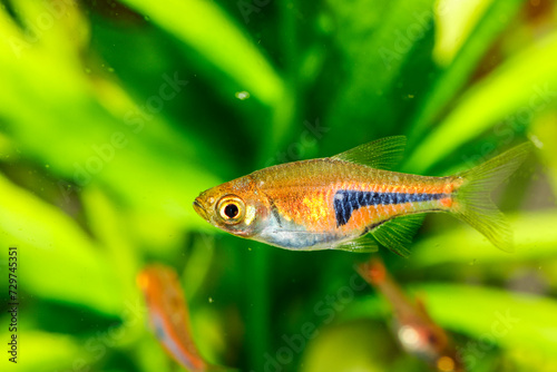 False Harlequin rasbora, Lambchop rasbora, scientific name is Trigonostigma espei, in freshwater aquarium.
