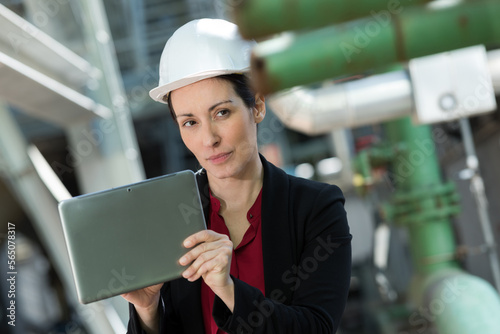 famale architect at work on site with tablet