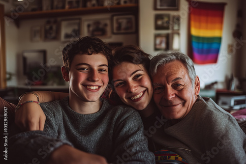 Family bonding in a cozy living room with laughter and smiles captured in the warm glow of midday sunlight