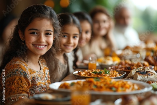 Family dinner in America, everyone gathered around table, sharing hearty meal,