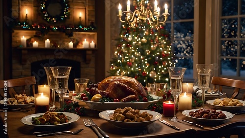 Family Feast with Christmas and New Year's Spirit