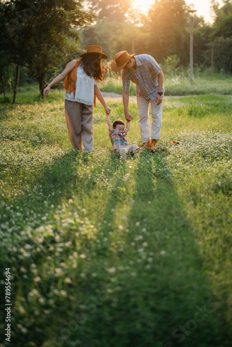 Family Fun in the Great Outdoors: Asian Parents and Cheerful Children Enjoying Summer Camping Vacation, A Happy Day of Leisure and Nature Exploration, Creating Memorable Outdoor Adventures Together