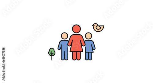 Family Gathering, Vector Illustration, Outdoor Park, Simple Design, Joyful Environment, Playful Viewpoint, Concept of Pet Interaction