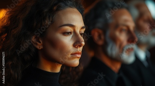 Family Grieving at a Funeral Ceremony with a Focus on Sadness and Mourning