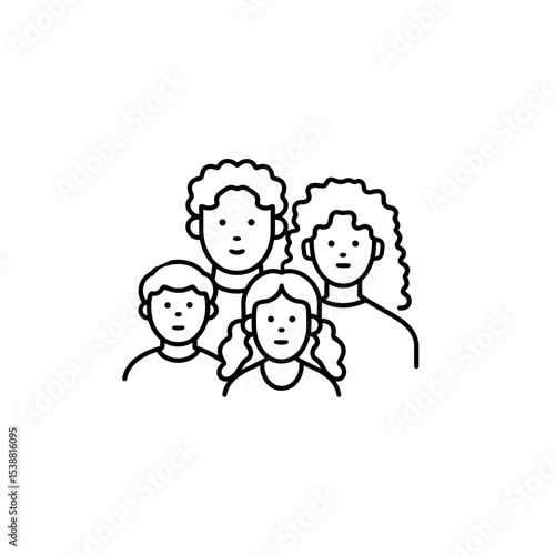 Family group poses together outlined simple white background