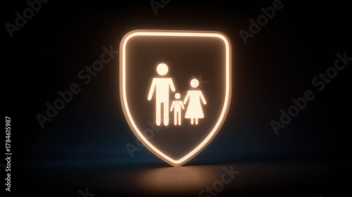 Family icon illuminated concept of protection and security