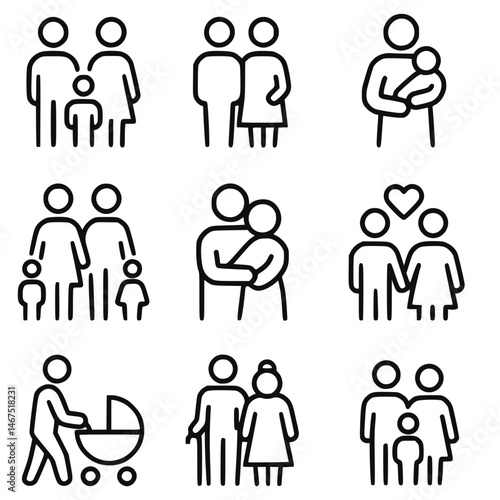 Family Icons Set – Inclusive Parent and Child Symbols for Diverse Families