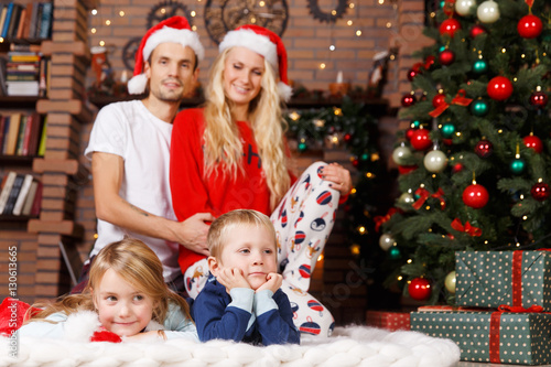 Family in pajamas on Christmas