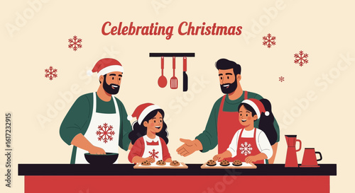 Family Preparing Festive Treats: Christmas Cookie Baking Together Illustration