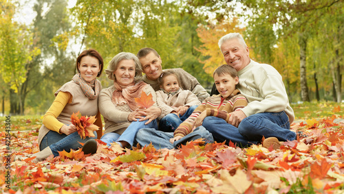 Family relaxing in autumn park