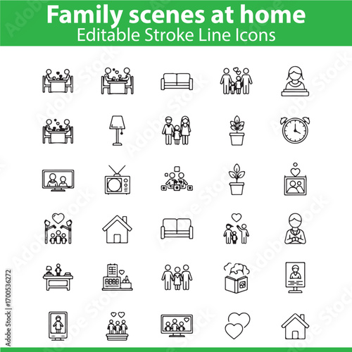 Family Scenes at Home Illustration – Parents, Children, Lifestyle, and Daily Activities Vector Art