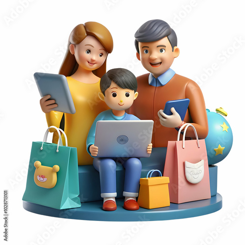 Family Shopping Online Together: Soft Abstract Business-Themed Background with Space for Promotion & Tech Experience