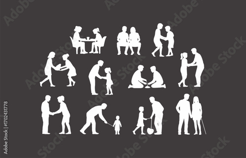 Family Silhouettes Vector Collection – Parents, Children, Parenting, Love, Care, Education, Togetherness, Icons for Design, Print, Web