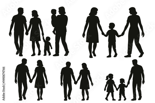 Family silhouettes walking together, enjoying quality time outdoors during sunny day