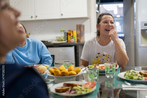 Family sitting at dining table and enjoying lunch