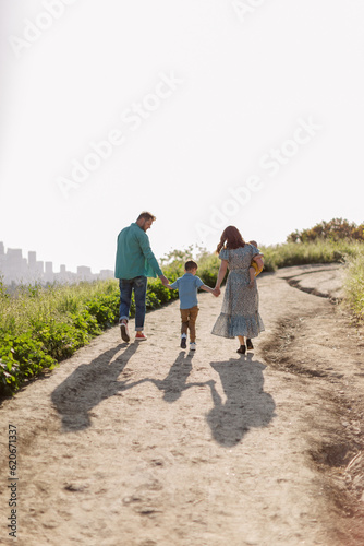 Family Walk Up Path Holding Hands