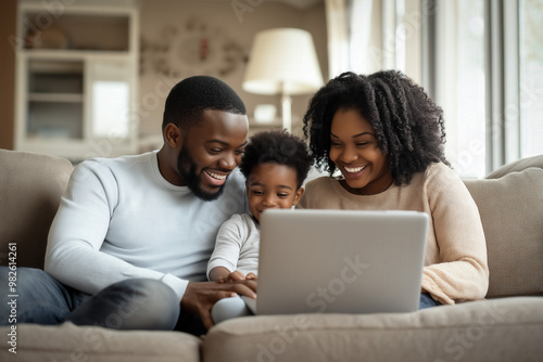 Family Watching Laptop And Laughing