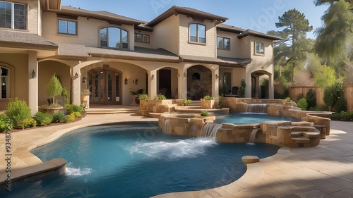 "Family-Friendly Pool with Splashing Water Features"