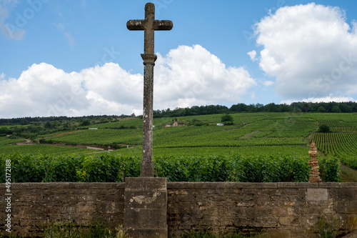 Famous clos vineyards with stone walls near Nuits-Saint-Georges in Burgundy wine region, France