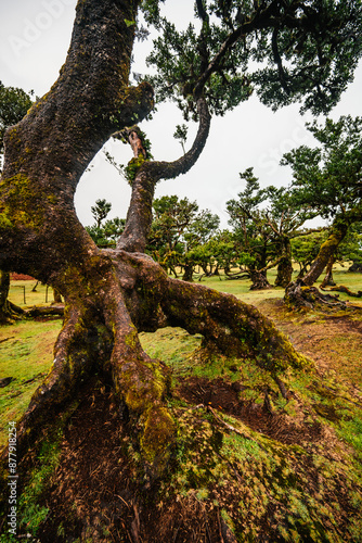 Fanal Forest. Misty forest in Fanal. Old laurel tree in laurel tree forest in madeira in Portugal