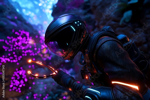Fantasy conservationists working to heal a magical landscape, using glowing tools to restore life to the enchanted forest and wildlife