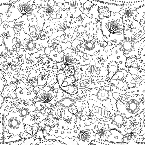 Fantasy flowers seamless pattern coloring
