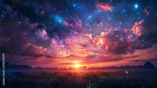 Fantasy Starry Night Sky in Blue and Purple A Magical Journey Through Celestial Colors and Dreamlike Landscapes