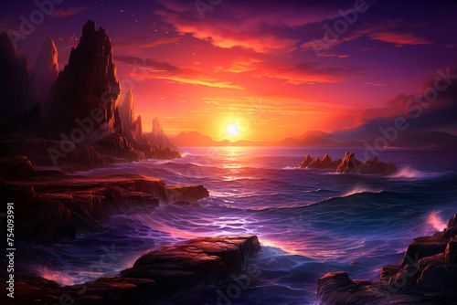 Fantasy sunset over ocean or sea