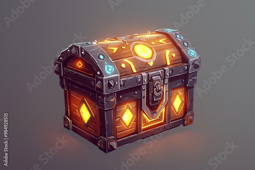 Fantasy Treasure Chest Glowing with Magic and Gems