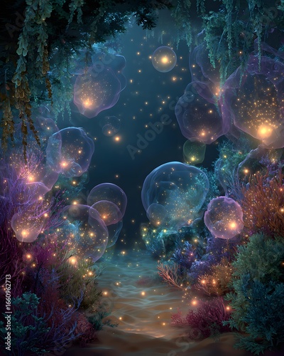 Fantasy-inspired background with glowing orbs and mystical atmosphere