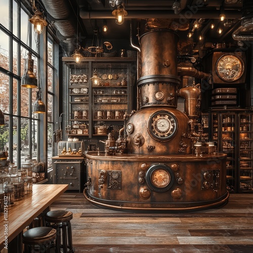 Fantasy-style chocolate factory with whimsical machinery and colorful décor.