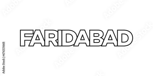 Faridabad in the India emblem. The design features a geometric style, vector illustration with bold typography in a modern font. The graphic slogan lettering.