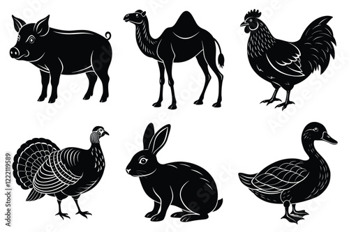 Farm and Domestic Animals set, Animals silhouette collection vector illustration