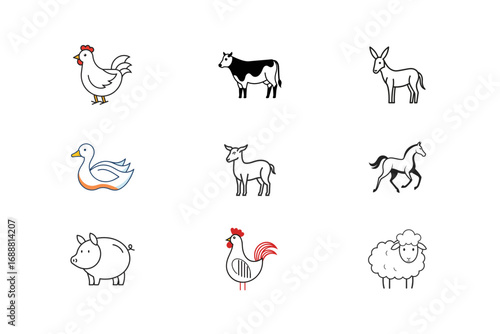 Farm Animals Silhouette Collection with Colorful Accents chicken rooster
