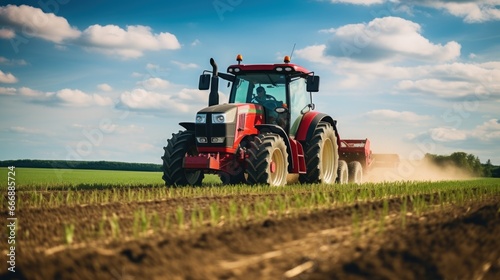 Farm Machinery: A tractor plowing a vast field in preparation for planting crops.