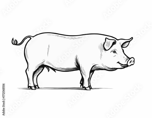 Farm pig sketch hand drawn side view Farming Vector illustration