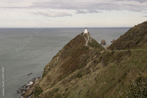 Faro a lo alto de un acantilado en la costa de la Isla Sur de Nueva Zelanda