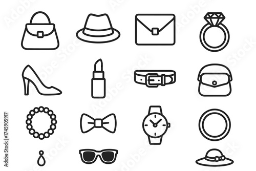 Fashion accessories collection: bags, jewelry, shoes, and hats icons set